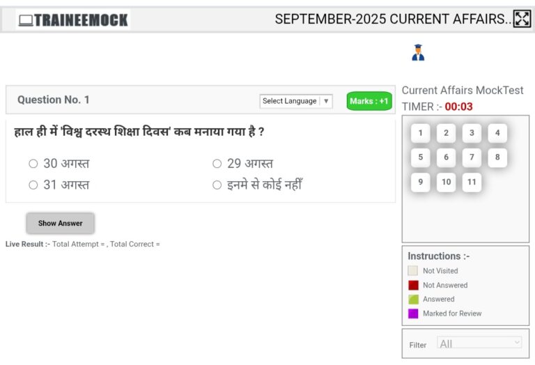 Daily Current Affairs Quiz : 17-September -2025, Read Daily Current Affairs MCQ with Answers, Attempt Today’s Current Affairs Quiz with …